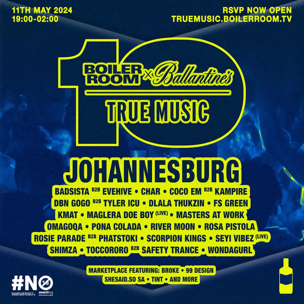 Before heading to South Africa, Boiler Room and Ballantine’s will kick off True Music 10 with an intimate pop-up at a secret location in Soho, London on 4th April. The series of True Music 10 pop-ups will continue to Colombia and South Africa, rolling out in select cities, and showcasing some of the most forward-facing True Music artists from each country. Music fans around the world will also be able to tune in and catch the South Africa pop-up shows, broadcast from Durban and Pretoria for free viahttps://truemusic.boilerroom.