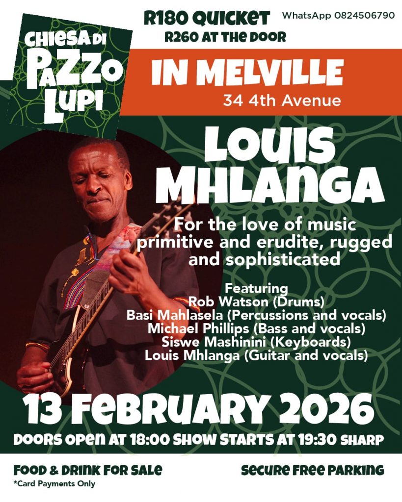 A rare opportunity to experience one of the region’s most celebrated guitarists up close, as Mhlanga brings his distinctive, soul-driven sound tochiesa di PAZZO LUPi.