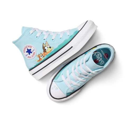 The collection spans a wide range of styles, each one crafted to reflect the colourful energy and emotional depth of the show. The Chuck Taylor All Star Hi features a bold canvas upper with mixed digital print techniques and core Chuck details, while the EVA Lift version includes a discoverable Bluey Star detail on the lining — a hidden homage to the show’s sense of wonder. The Chuck Taylor All Star 1V arrives in multiple variations, including a playful homage to the “Keepy Uppy” episode and a version with left and right shoes representing Bluey and Bingo, complete with fuzzy tail heelstays.